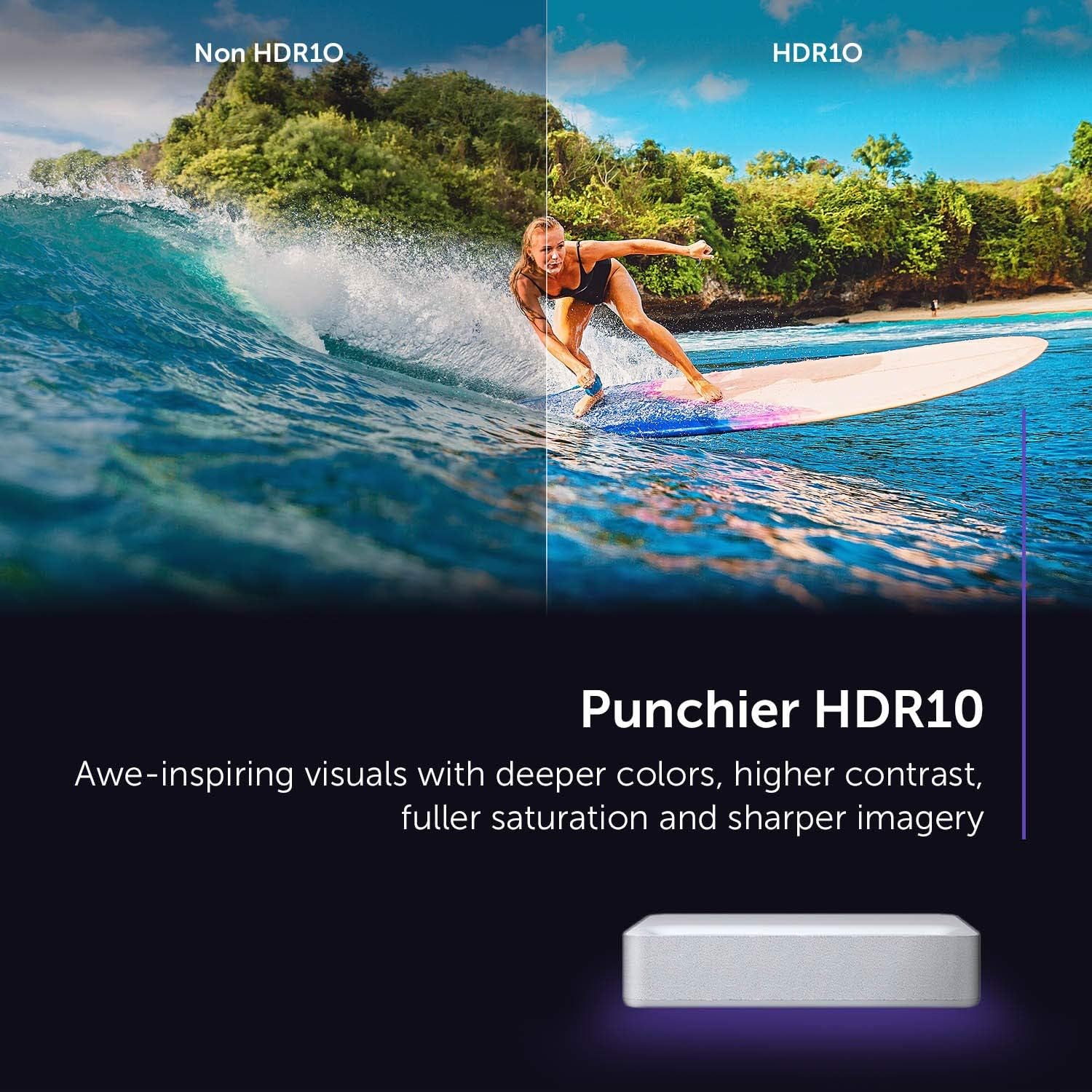 - Lackluster HDR10 – Its HDR10 color range is lackluster which is a common case with projectors.